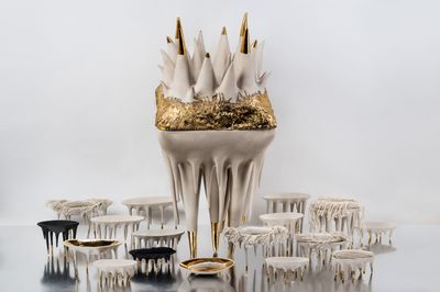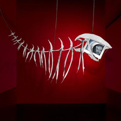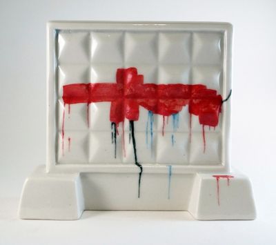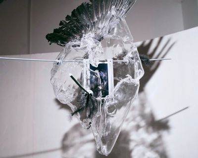 Материалы Медиаобъект. Полистирол, монитор, сталь, аллюминий, перья