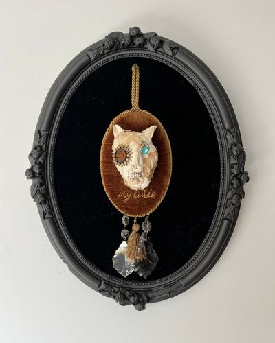 Материалы Винтажная рама, бархат, текстильная скульптура, винтажная бижутерия. Ассамбляж